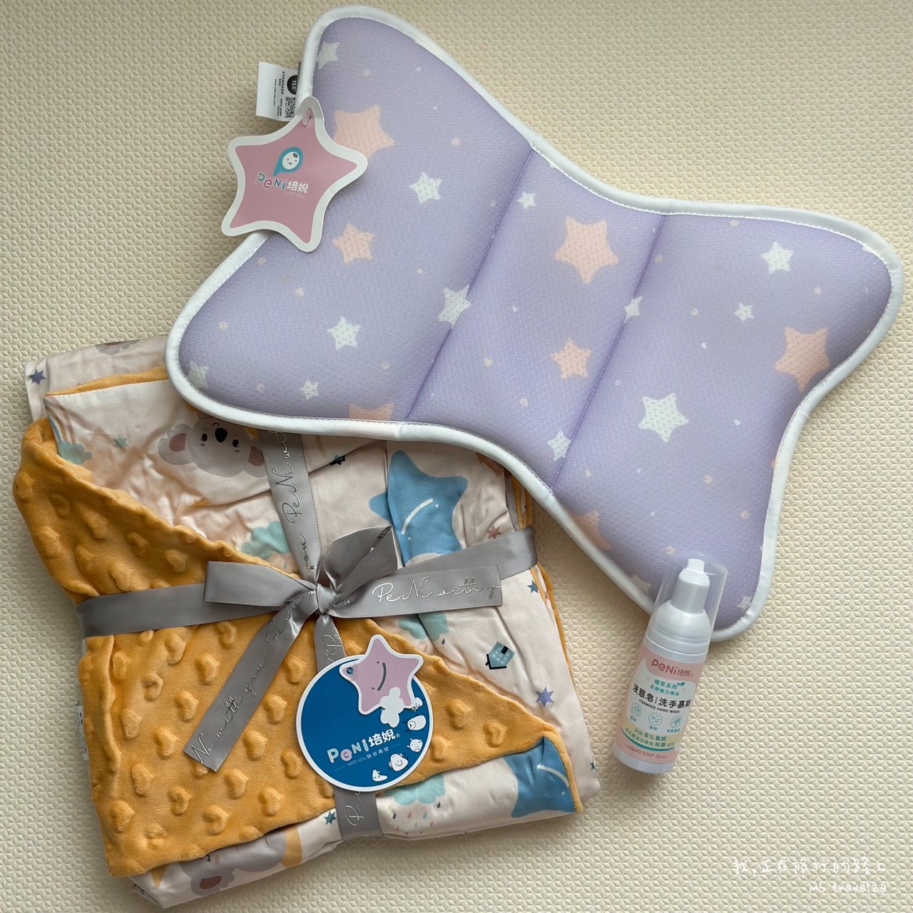 ღ 像是蝴蝶結造型的護頸枕,隨著桑寶月齡漸大,開始會外出~提籃、推車及汽座就有使用的需求,