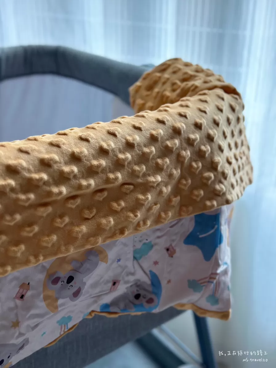 ღ 安撫毯雙面不同的材質設計,摸起來真的很舒服,豆毯絨布面觸感相當親膚,
