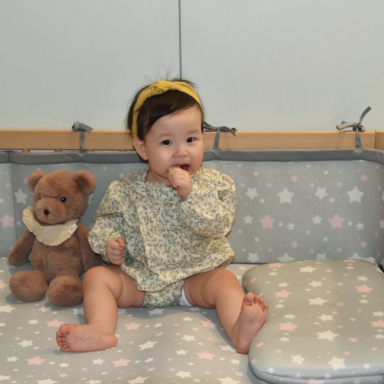現在,她自己睡嬰兒床,睡覺很會滾來滾去