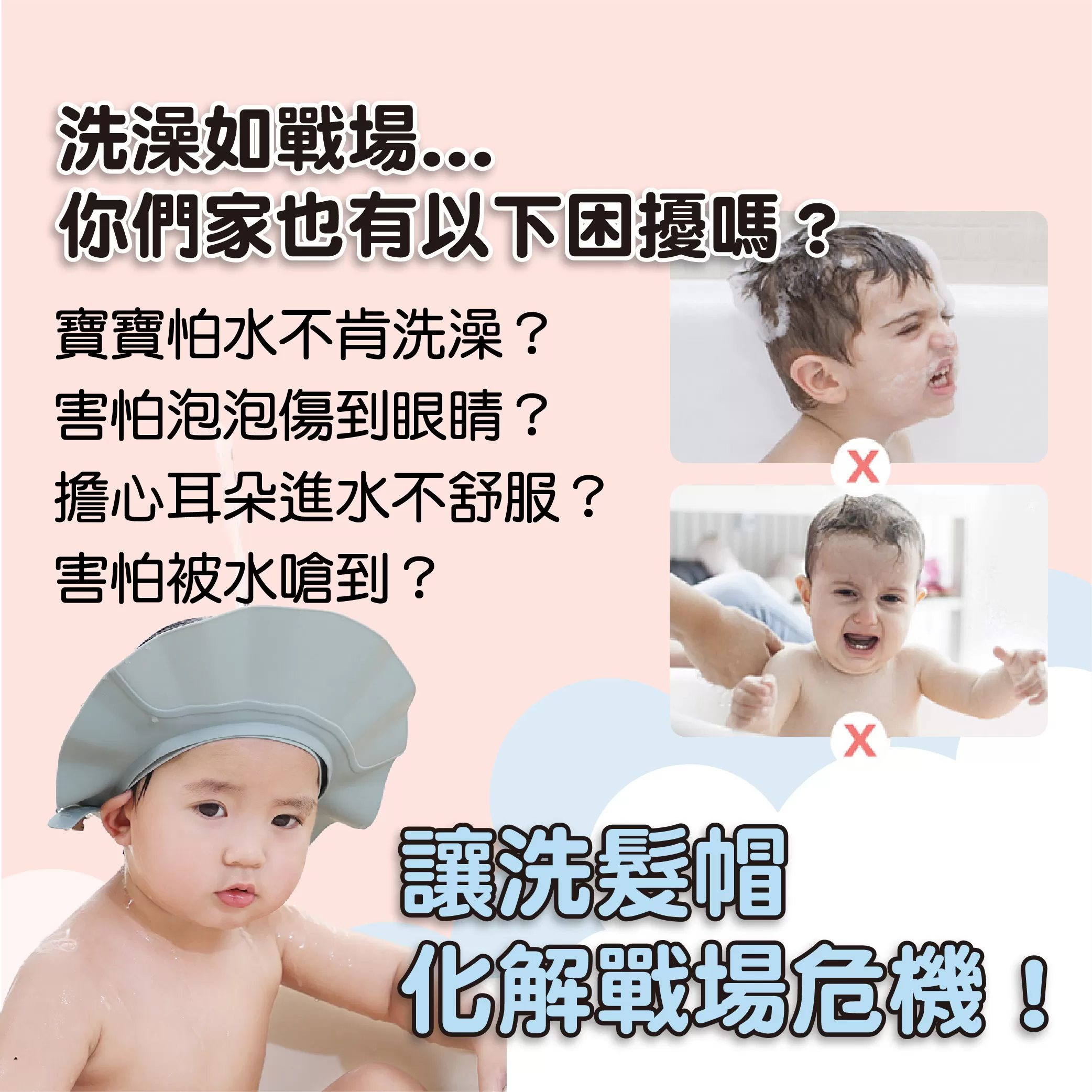 【產品特色】洗澡如戰場,寶寶怕水洗頭更痛苦...為化解媽咪困擾,培婗洗髮帽化解戰場危機,不再擔心泡泡進眼睛、耳多跑進水!