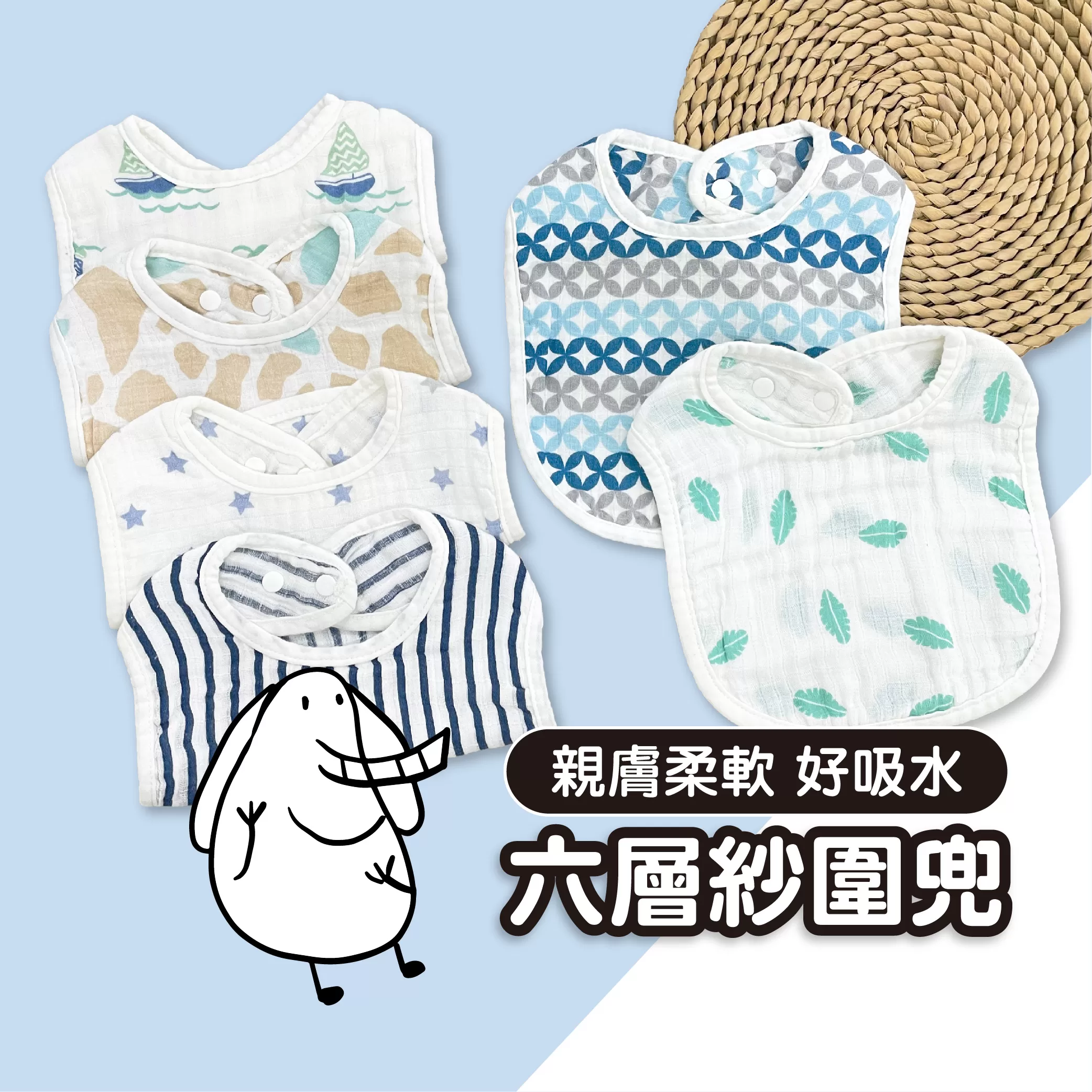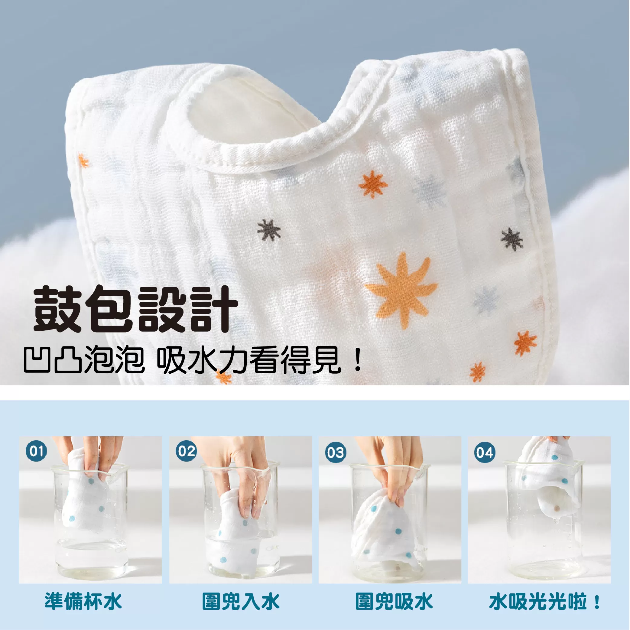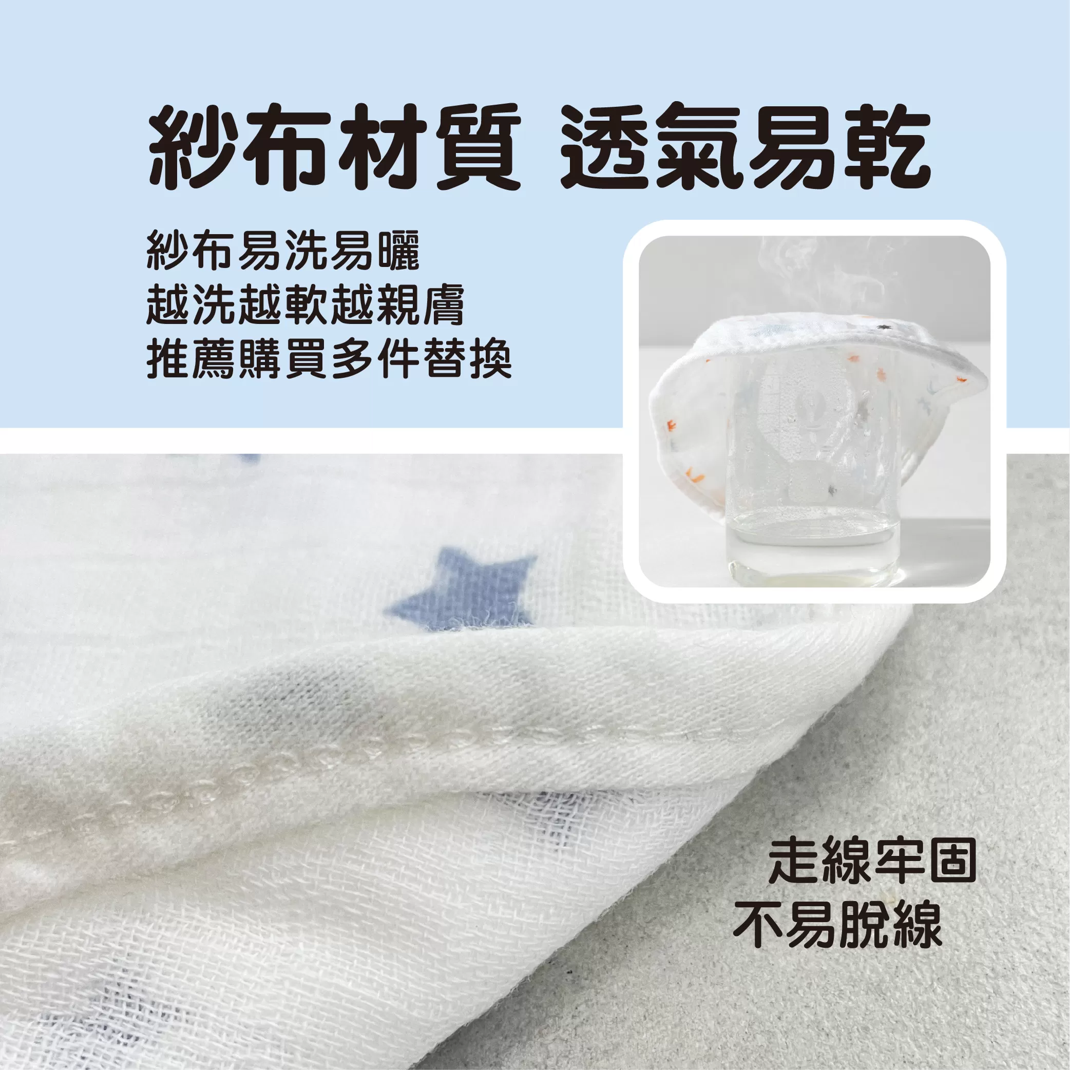 ✓ 紗布材質親膚,不刮傷嫩嫩的臉~
