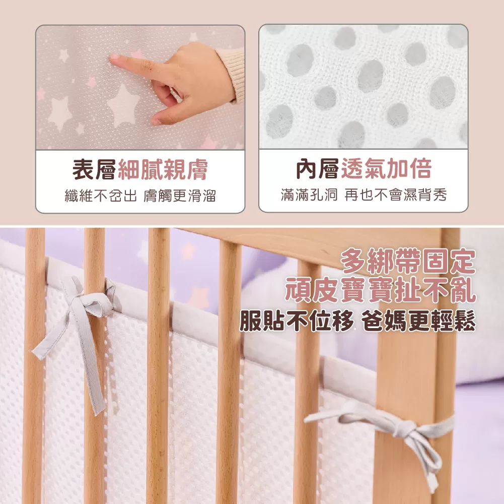 ✓ 極佳的透氣性,不用擔心寶貝滾到床邊會影響呼吸。
