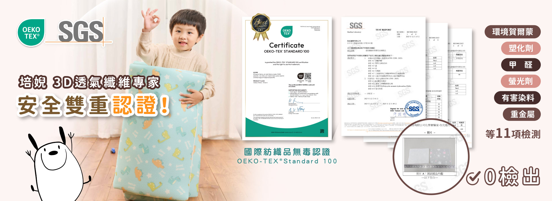 瑞士 OEKO-TEX 與SGS檢驗雙認證更安心:告別熱疹與塵蟎,最適合新生兒使用的床墊