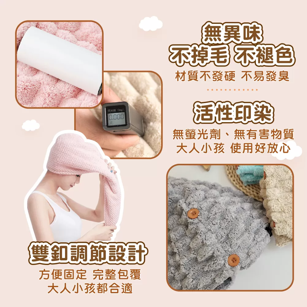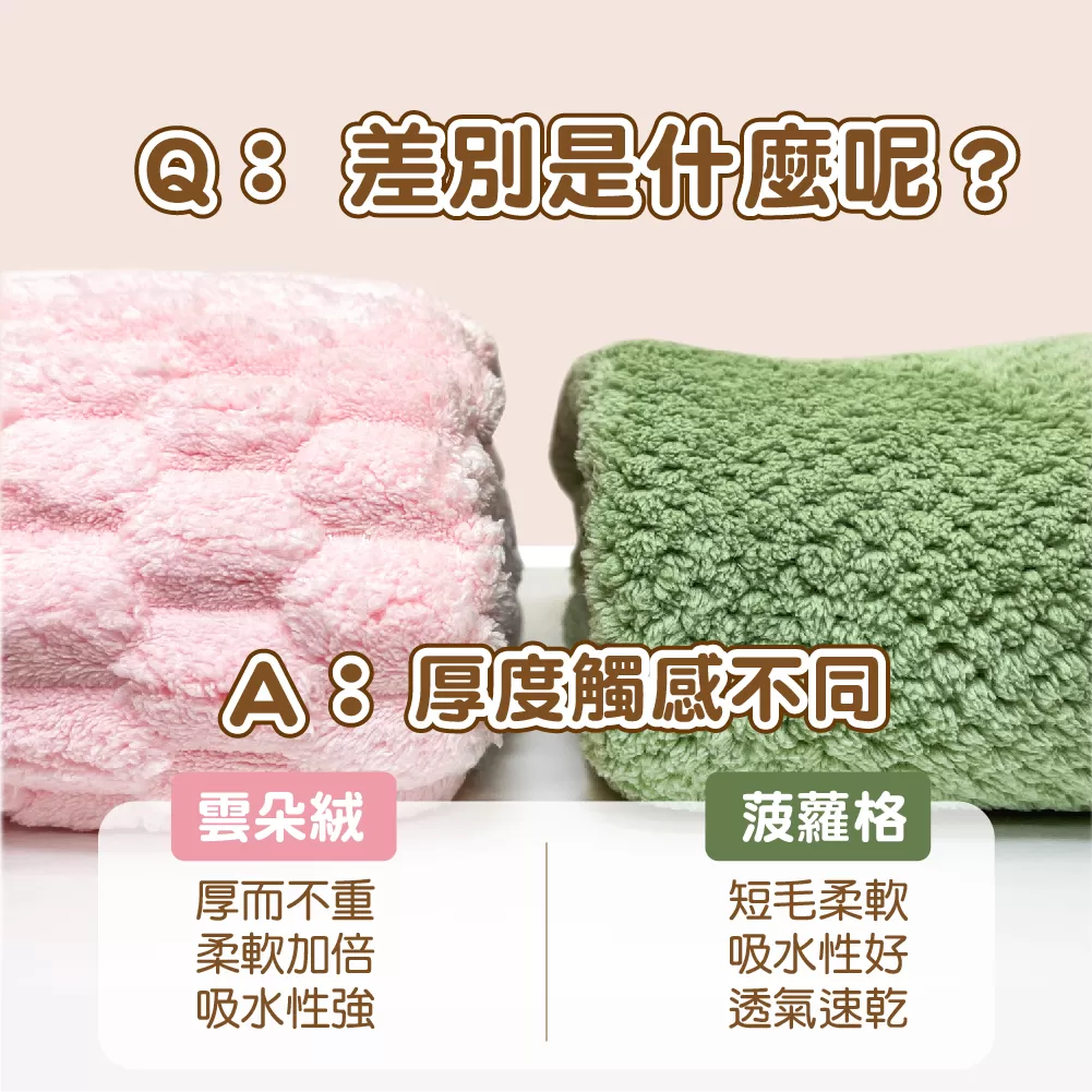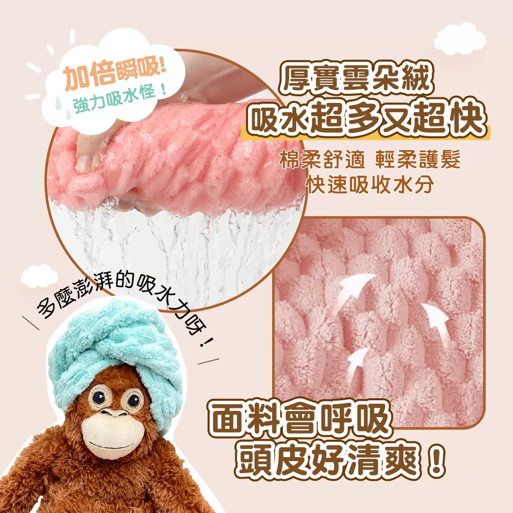 ✓ 最新雲朵絨面料,重而不厚、更加柔軟親膚,吸水量爆炸多,更棒是在吸收水份的同時,還能帶走多餘熱量,就算是夏天包在頭上也不會悶熱喔!