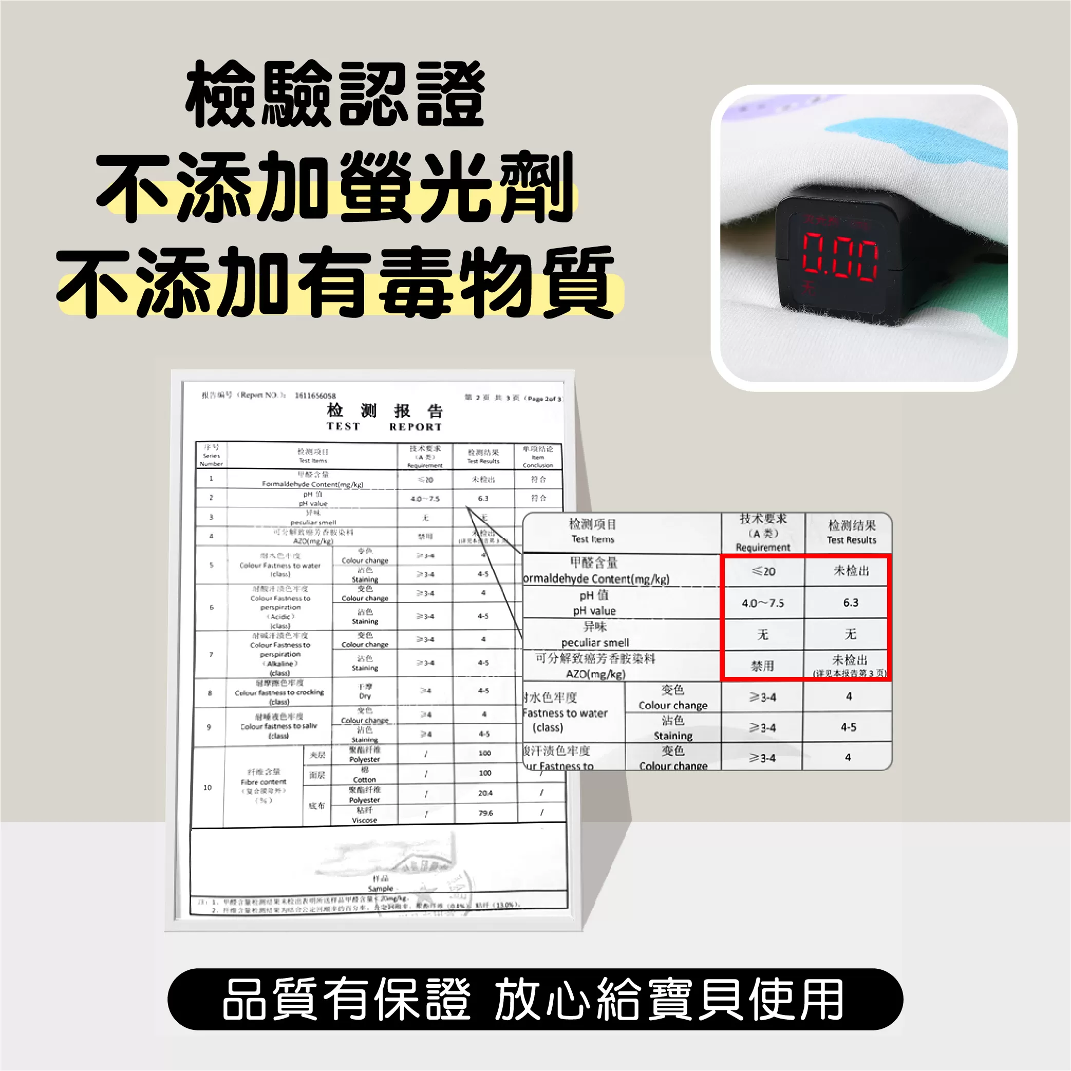 ✓ 純棉柔軟、無螢光劑、無甲醛、可機洗。