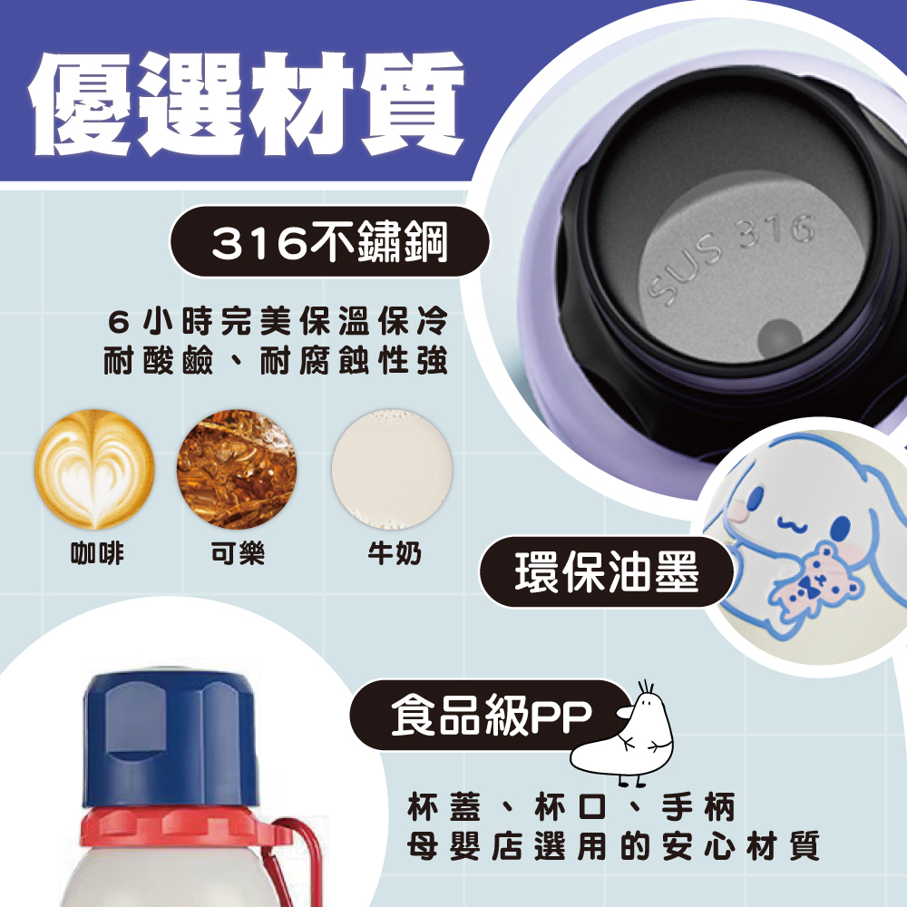 ✓ 316不鏽鋼內膽,酸、甜、冷、熱都能裝,耐酸鹼不鏽鋼材質,讓爸媽好放心!