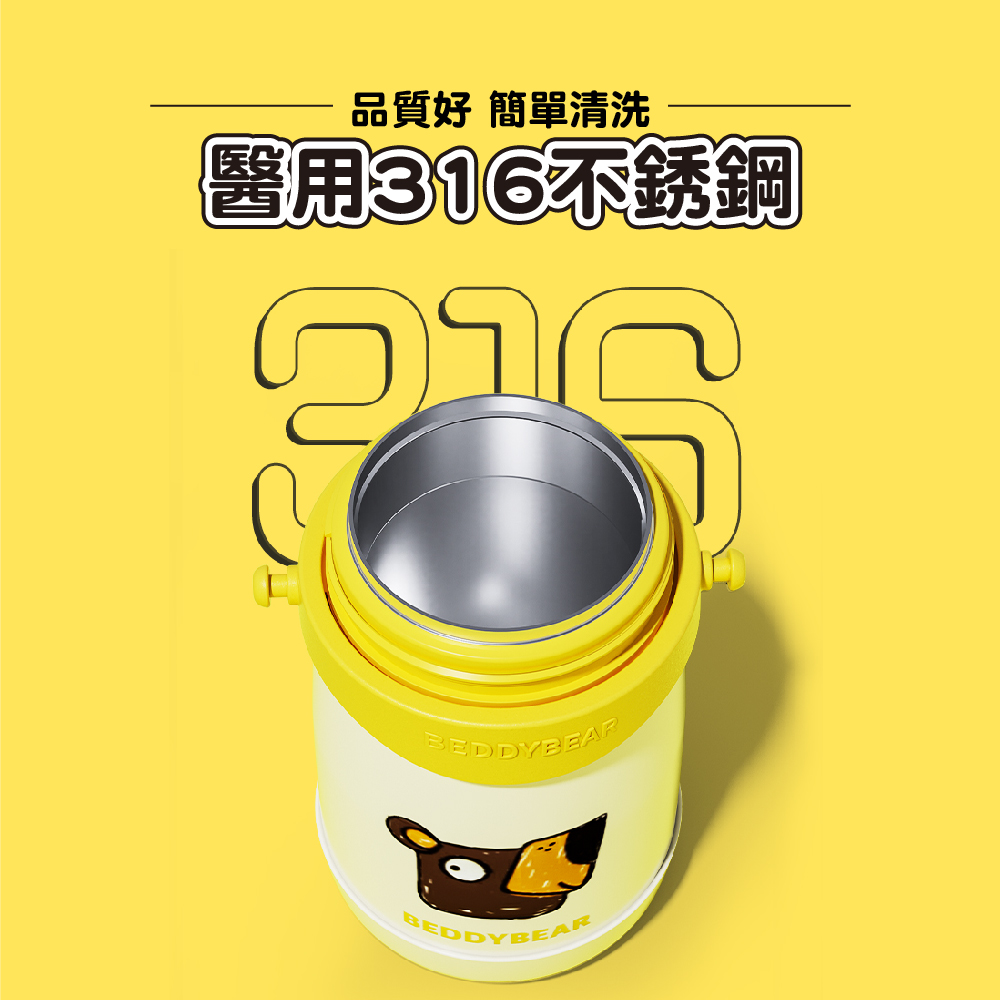 【韓國BeddyBear】316不鏽鋼兒童保溫杯口袋系列 【一杯三蓋630ml】