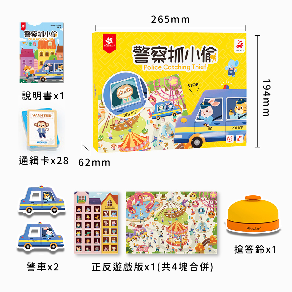 【產品特色】PinWheel 警察抓小偷桌遊是一款結合數學啟蒙與角色扮演的遊戲,專為提升孩子的反應能力而設計。這款遊戲不僅能讓寶貝在遊戲中體驗刺激的警匪追逐,更能在輕鬆愉快的氛圍中,增強他們的各種能力。