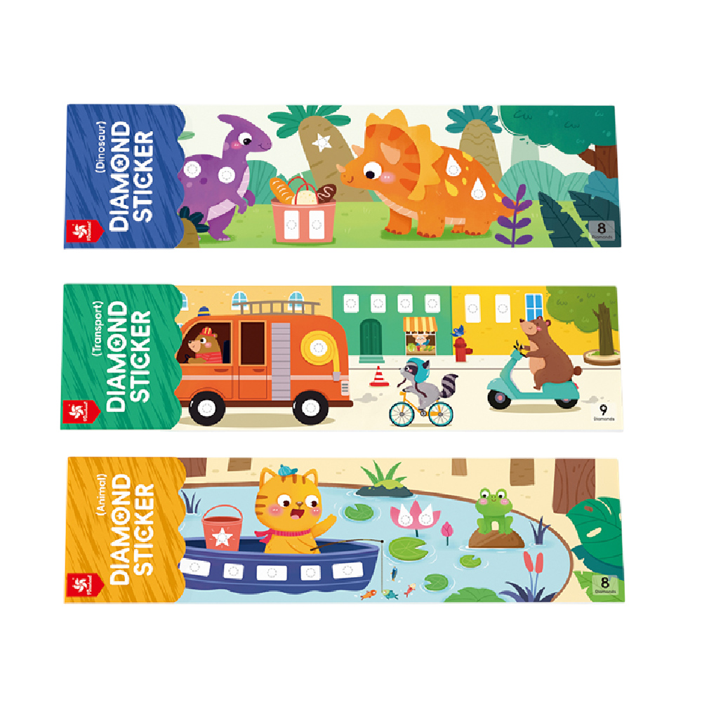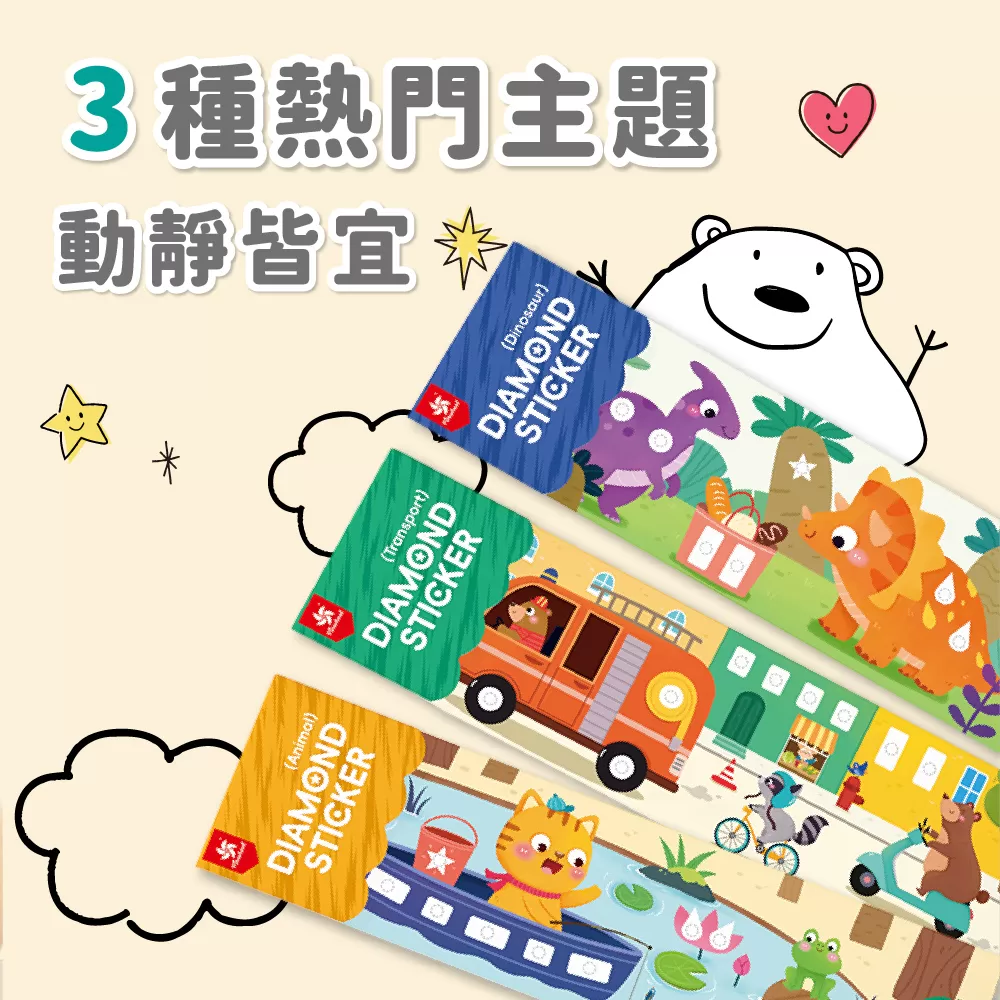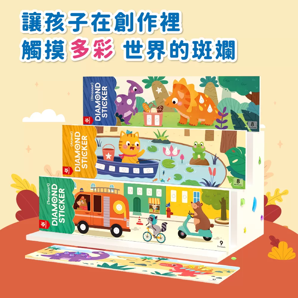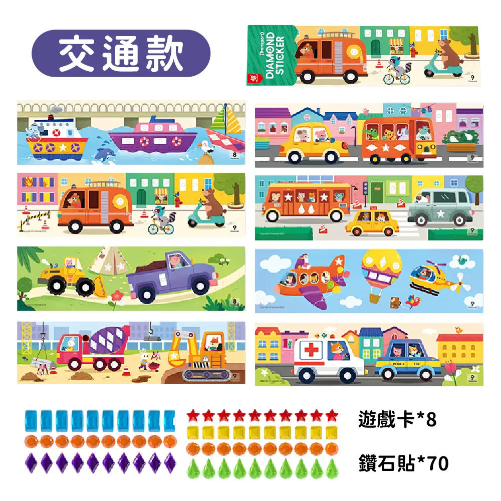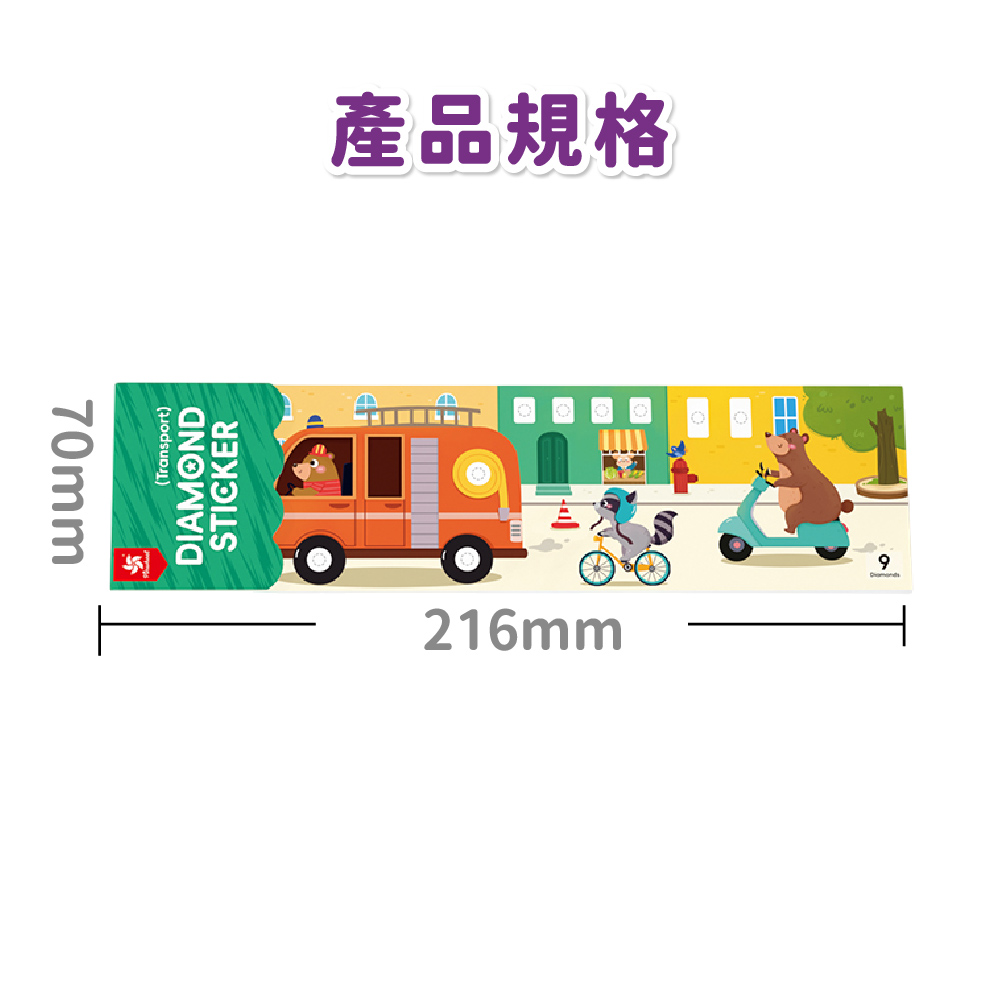 ‣ 產品顏色:交通款(鑽石70貼+場景卡8張)、動物款(鑽石70貼+場景卡8張)、恐龍款(鑽石70貼+場景卡8張)